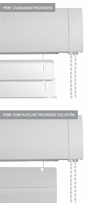 DOMYKATELNÉ PROVEDENÍ: Domykatelná žaluzie, u které je po dovření lamel minimalizován prostup světla skrze lamely. Efektu je docíleno excentrickým umístěním otvorů v lamelách pro textilní pásku a fixační strunu.